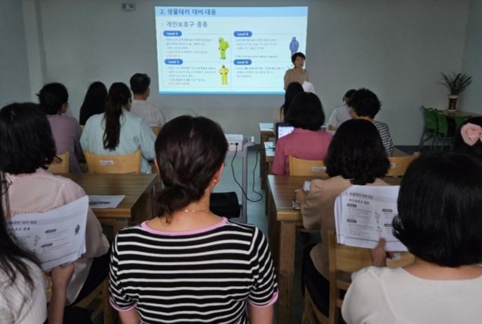 이번 교육은 생물테러 감염병 이해 및 대응체계, 의심환자 발생에 따른 시나리오를 기반으로 한 영상교육과 현장대응능력 향상을 목적으로 진행됐다.