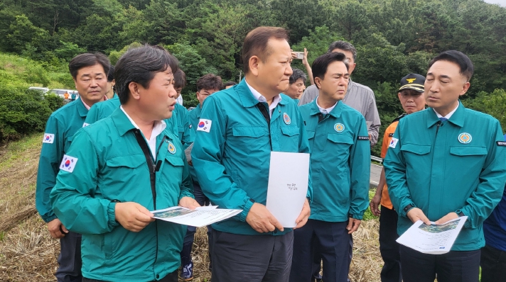 [뉴스서치] 박정현 부여군수는 10일 부여군 구교리 수해 현장을 방문한 이상민 행안부장관과 김태흠 충남 도지사에게 부여군에 대한 특별재난지역 조기 선포를 건의했다.