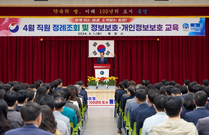 [뉴스서치] 통영시는 지난 2024년 4월 1일 시청강당에서 4월 직원 정례조회를 개최하면서 우수 직원 표창과 함께 그 동안의 시정 성과와 주요업무 추진상황 공유 및 정보보호 및 개인정보보호에 대한 직원 보수교육을 진행했다고 전했다.