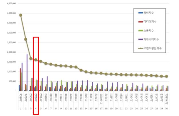 박경귀 아산시장은 “광역 단위 도시, 기초 단위 도시를 구분하지 않고 진행한 조사에서 아산시가 4위를 차지했다는 것은 도시브랜드 파워를 인정받았다는 것으로 의미가 있다”며