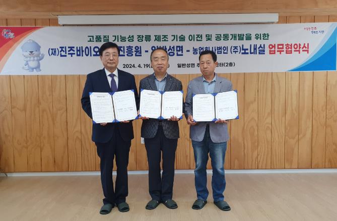 ▲ (재)진주바이오산업진흥원-진주시 일반성면-(주)노내실 업무협약 |