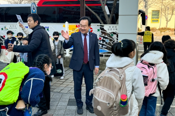 먼저, 학생들의 안전한 등하교를 위해 전세버스 이용과 주정차단속요원 배치, 차선 규제봉 설치 등 교통 안전대책을 시행했다.
