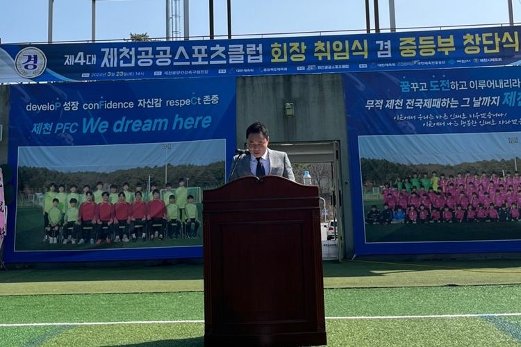 [뉴스서치] 제4대 제천시공공스포츠클럽 회장 취임식 및 중등부 축구 창단식이 23일 제천공공스포츠클럽(봉양건강축구캠프장)에서 열렸다.