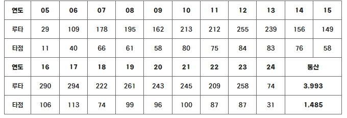 이번 시즌 각종 타격 관련 기록을 세우고 있는 최정은 4,000루타, 1,500타점이라는 대기록 역시 눈 앞에 두며 화려한 시즌을 보내고 있다.