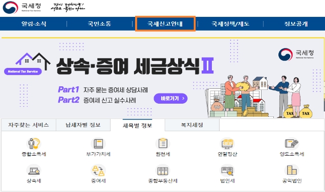 ▲ 국세청 누리집 접속 후 ‘국세신고안내’ 클릭 |