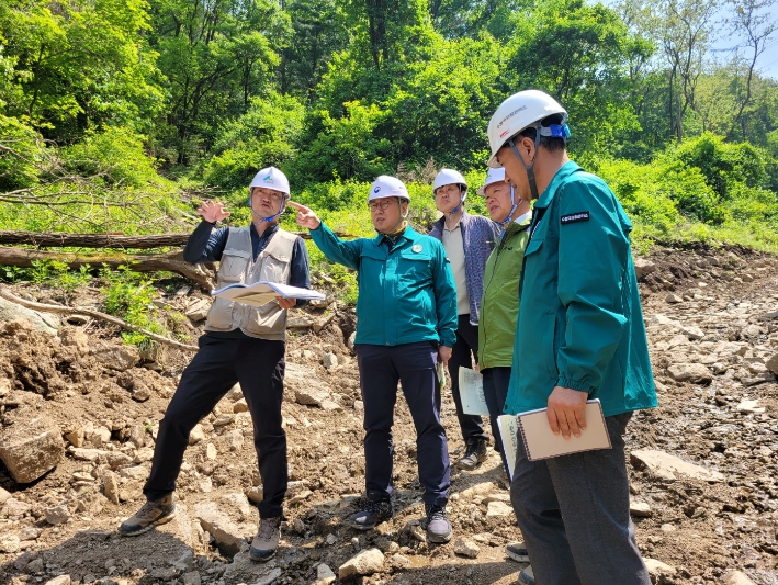 [뉴스서치] 북부지방산림청은 사업장 안전관리 실태와 사업 품질 점검을 위해 5월 10일 경기도 광주시 일원 산림토목사업장에서 안전 장구 착용, 안전 수칙 준수 여부 등 현장의 안전관리 내용을 점검하고 사방댐 설치 공사 진행 상황을 확인했다.