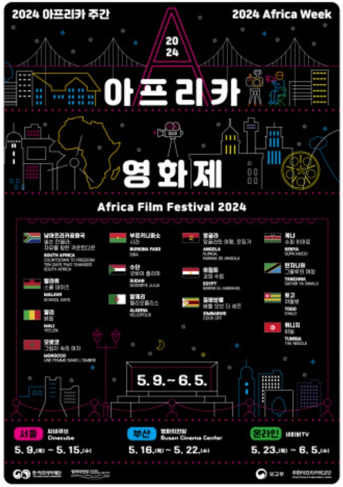 한·아프리카재단과 영화의전당이 주최하고, 외교부와 주한아프리카외교단(AGA)이 후원하는 이번 영화제는 5월 9일(목) 개막식을 시작으로 10일(금)부터 15(수)까지 서울 씨네큐브 광화문과 5월 16(목)부터 5월 22일(수)까지 부산 영화의전당에서 개최된다.