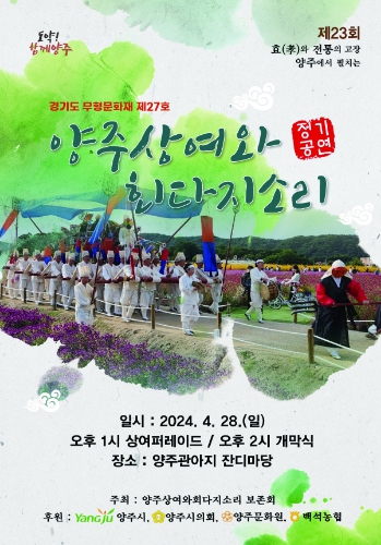 [뉴스서치] 양주시를 대표하는 무형유산 정기공연이 4월 마지막과 5월 첫째 주 주말에 열린다.