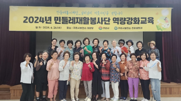 [뉴스서치] 구리시 수택보건지소는 6월 26일 보건소 대강당에서 재활 전문 자원봉사단인 민들레 재활봉사단의 역량 강화 교육을 실시했다.