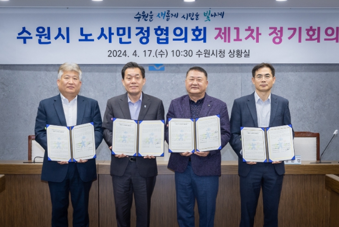 [뉴스서치] 수원시 노사민정협의회는 17일 수원시청 상황실에서 2024년 제1차 수원시 노사민정협의회 정기회의를 열고, ‘2024년 수원시 노사민정 공동선언’을 채택했다.