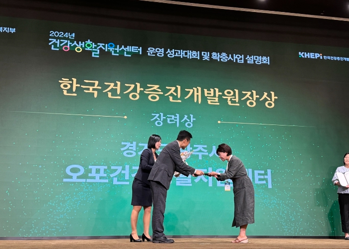 [뉴스서치] 광주시 오포건강생활지원센터는 20일 ‘2024년 건강생활지원센터사업 성과 대회’에서 우수기관 유공 기관표창을 수상했다.