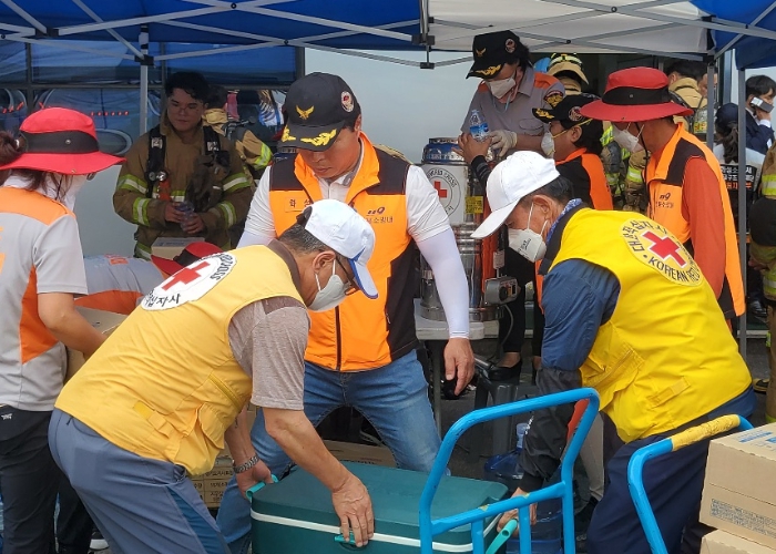 [뉴스서치] ‘화성 아리셀 공장 화재사고’극복을 위해 자원봉사자들이 더운 날씨에도 불구하고 구슬땀을 흘리고 있다.