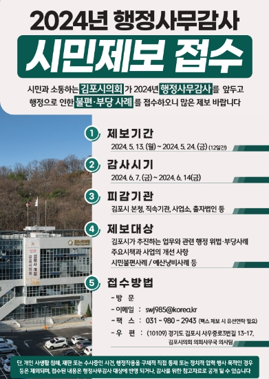 ▲ 2024년 행정사무감사 시민제보 접수 안내 포스터 |
