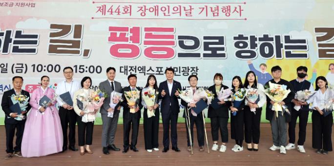 [뉴스서치] 대전시의회 이상래 의장은 19일 대전엑스포 시민광장에서 개최된 ‘제44회 장애인의 날 기념행사’에 참석해 장애인 복지증진에 노고를 다하는 대전장애인단체총연합회 소속 회원들에게 감사의 인사를 전했다.