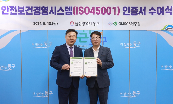 [뉴스서치] 울산 동구는 5월 13일 국제표준화기구(ISO)로부터 ‘안전보건경영시스템(ISO 45001) 인증’을 획득했다고 밝혔다.