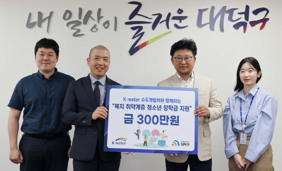 [뉴스서치] 대전 대덕구는 16일 한국수자원공사로부터 저소득 학생을 위한 장학금 300만 원을 기탁받았다고 밝혔다.