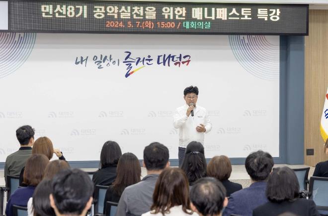 [뉴스서치] 대전 대덕구는 7일 구청 대회의실에서 민선 8기 공약을 체계적이고 성공적으로 실천하기 위한 매니페스토 특강을 개최했다.