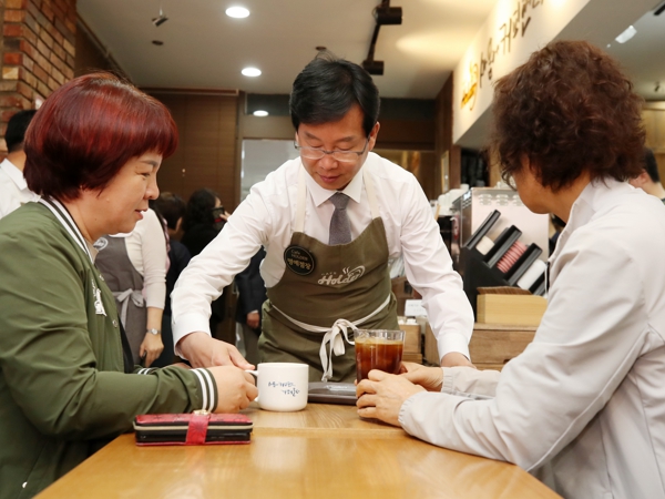 박병규 광산구청장, ‘청년장애인 일터’ 카페홀더 명예 점장