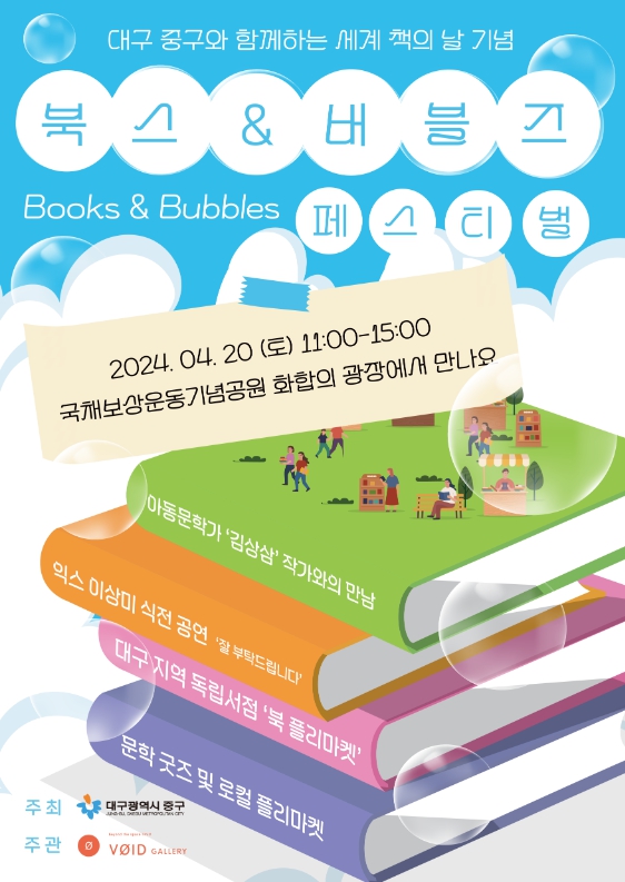 [뉴스서치] 대구 중구는 20일 오전 11시 국채보상운동기념공원 화합의 광장에서 ‘북스 · 버블즈 페스티벌’을 개최한다.