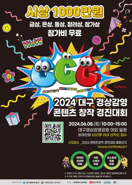 대회관련 상세정보는 창작경진대회 누리집에서 확인하거나2024 대구경상감영 콘텐츠창작 경진대회 운영팀에 문의하면 된다.