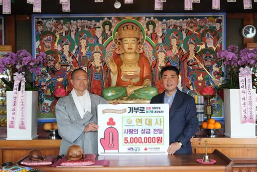▲ 대한불교관음종 연대사 부산 남구에 성금 500만원 전달 |