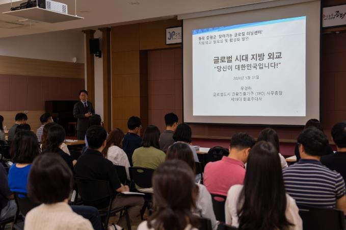 대한민국시도지사협의회의‘찾아가는 글로컬 러닝센터’사업의 일환으로 진행된 이번 교육은 지자체 공무원의 글로벌 역량 강화 및 국제교류 마인드 함양을 위해 마련됐다.
