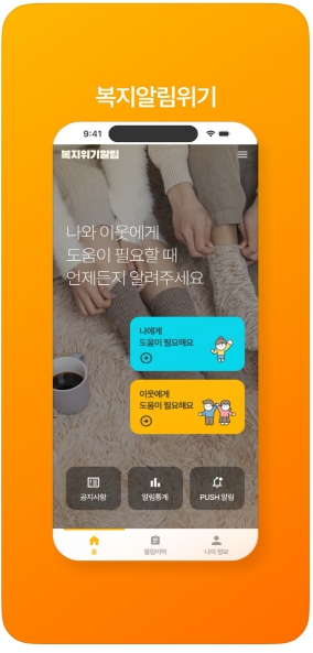 사회적 위험요소인 실업, 질병에 의한 소득감소 및 고령, 부양의무자의 상실, 가족관계 단절 등으로 어려운 상황에 놓일 경우 언제 어디서든 누구나 본인 또는 이웃의 위기상황을 쉽고 빠르게 신고할 수 있는 서비스로 “전국민 복지위기 알림·신고체계 구축”의 일환으로 추진된다.