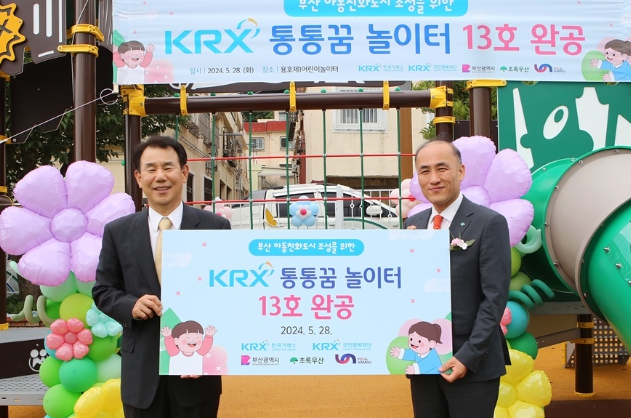 ‘KRX 통통꿈 놀이터’사업은 부산광역시와 한국거래소 행복재단이 체결한 아동친화도시 문화형성을 위한 아동사업 업무협약의 일환으로 2018년부터 현재까지 총 13개소의 노후 놀이터가 이 사업으로 새롭게 단장을 하게 됐다.