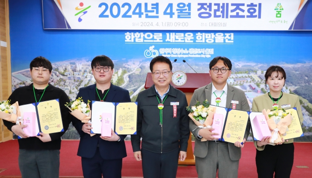 정성용 주무관(시설9급)은 민원응대 및 업무처리에 적극적이며, 먼저 인사하기 운동을 실천하며 상호존중하고 화합하는 문화조성에 이바지했고, 김윤수 주무관(시설 9급)은 동료 직원과 원만한 유대관계 조성을 통한 명랑한 직장 분위기 조성에 앞장섰다.