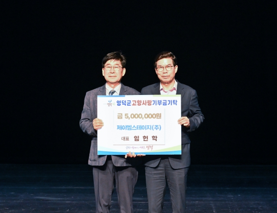 [뉴스서치] 제이엠스테이지(주) 임헌학 대표가 지난 23일 예주문화예술회관 개선공사 준공 보고회 자리에서 김광열 영덕군수에게 고향사랑기부금 500만 원을 전달했다.