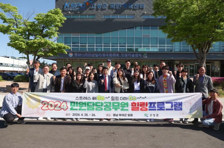 [뉴스서치] 고성군은 4월 25일부터 26일까지 1박 2일간 민원 업무 담당자 30여 명을 대상으로 충남 부여군 일원에서 ‘2024년 민원 담당 공무원 힐링 프로그램’을 실시한다고 밝혔다.
