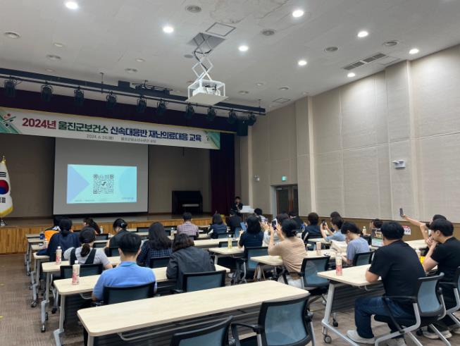 [뉴스서치] 울진군은 지난 24일 울진군청소년수련관 강당에서 재난 및 다수 사상자 발생시 현장에서의 신속한 재난의료대응·지원을 위해‘2024년 보건소 신속대응반 재난의료대응 교육·훈련’을 실시하였다.