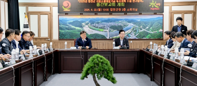 [뉴스서치] 합천군은 22일 군청 소회의실에서 김윤철 군수, 이선기 부군수 및 국직속기관장 등 20여명이 참석한 가운데 지방소멸대응기금 투자계획 수립용역 중간보고회를 개최했다.