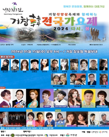 [뉴스서치] 거창군은 2024 거창韓 전국가요제가 5월 15일 수요일 오후 6시부터 거창창포원 잔디광장 특설무대에서 개최한다고 전했다.