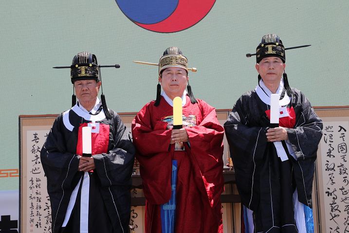 초헌관으로는 권기창 안동시장, 아헌관은 이충섭 성균관유도회 안동지부 회장, 종헌관은 권석환 안동문화원장이 맡아 분향과 함께 술을 올리고 절을 하며 축제의 성공을 기원했다.