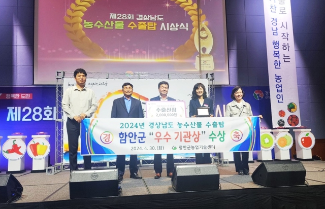 [뉴스서치] 함안군은 30일 창원컨벤션센터에서 열린 경남도 주관 제28회 경상남도 농수산물 수출탑 시상식에서 우수기관 수출 신장상을 수상했다.