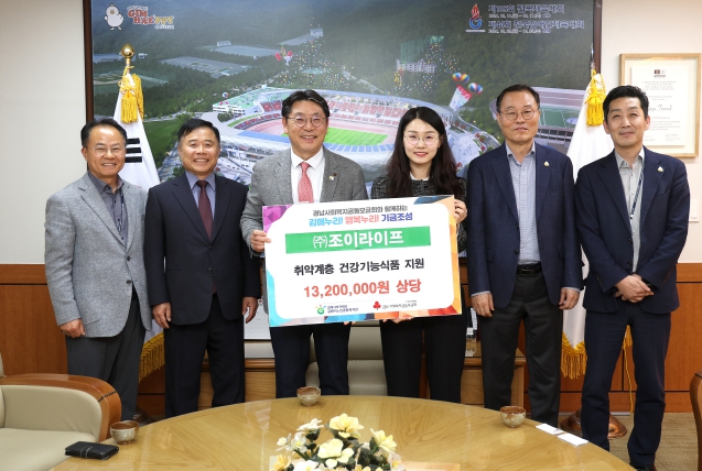 ㈜조이라이프 조수미 대표는 “취약계층의 경우 경제적 어려움 등으로 인해 균형 잡힌 식사가 어려운 경우가 많은데 건강기능식품을 전달함으로써 불균형적인 영양 섭취를 해소하고 면역력 강화에 도움이 되기를 바라는 마음에서 후원을 하게됐다”며 “앞으로도 지역사회와 상생하기 위해 지속적인 사회공헌활동을 펼치겠다”고 말했다.