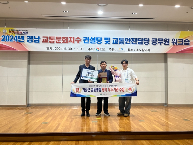 [뉴스서치] 거창군은 2023년 경상남도 시‧군 교통행정 분야 평가에서 우수 시‧군으로 2년 연속 선정되어 지난 30일 경상남도 주관 2024년 교통문화지수 컨설팅 및 교통안전담당 공무원 워크숍에서 기관 표창과 특별조정교부금 1억 원을 확보하는 쾌거를 이뤘다.