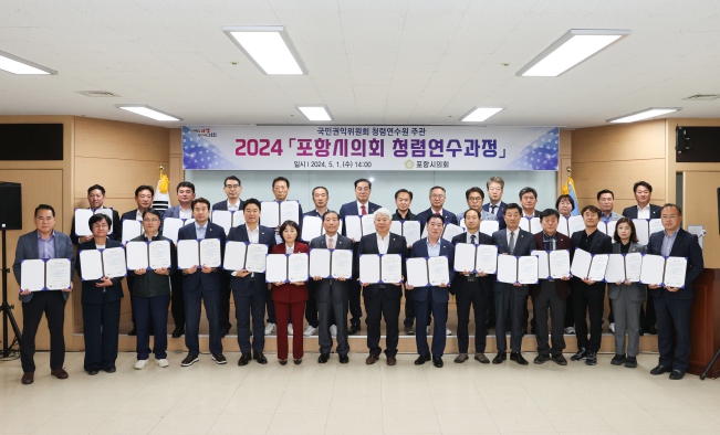 [뉴스서치] 포항시의회는 지난 1일 오후 시의회 청사 지하1층 회의실에서 전체 의원과 사무국 직원들을 대상으로 포항시의회 청렴연수 를 실시했다.