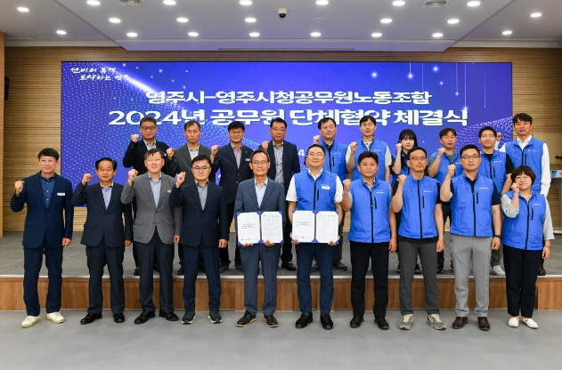 [뉴스서치] 영주시와 영주시청공무원노동조합이 4일 영주시청 강당에서 ‘2024년 공무원 단체협약’을 체결했다.