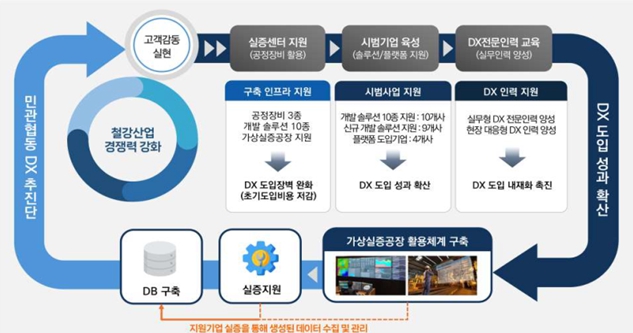 사업은 철강·금속 제조공정의 디지털 전환을 실증할 수 있는 장비와 이를 디지털로 구현한 가상공장을 구축하고, 중견·중소기업의 생산성 향상을 위한 기술지원 및 전문 인력을 양성한다.
