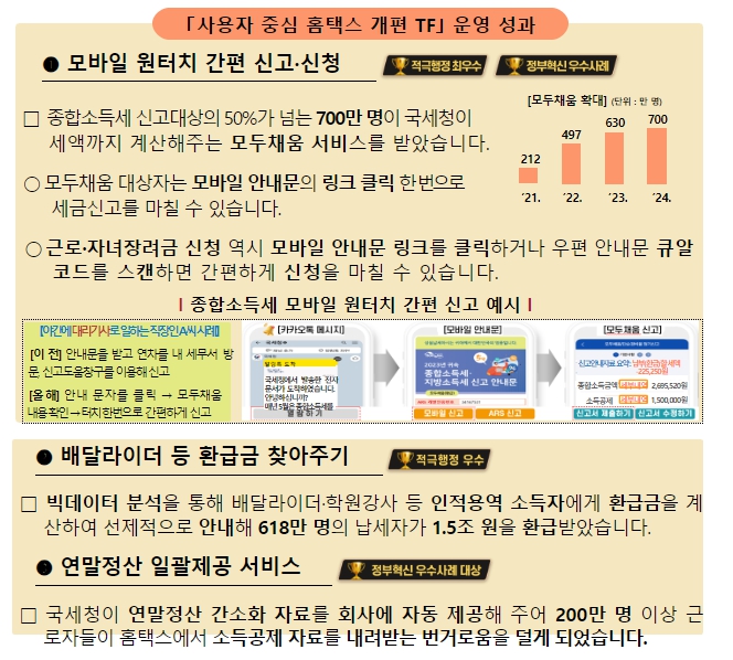 김창기 청장 취임 이후 국세청은 「사용자 중심 홈택스 개편 TF」를 구성하여 더 높은 수준의 납세서비스 제공에 힘써왔다.
