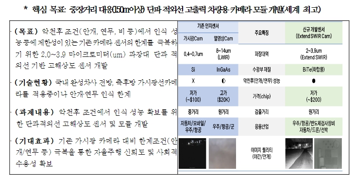 ▲ 비‧안개 등을 뚫고 볼 수 있는 차량용 센서 및 카메라 개발 |
