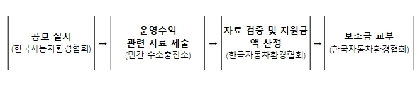 연료구입비 보조사업은 수소충전소의 안정적인 운영을 도모하고 수소차 생태계 구축을 촉진하고자 2021년에 도입됐다. 보조금은 지급 시점을 기준으로 이전 반기(6개월) 동안 수소충전소 수입‧지출 현황 등에 대한 종합적인 검토를 거쳐 지급 조건을 충족하는 민간사업자에게 1년에 두 번씩 지급된다.