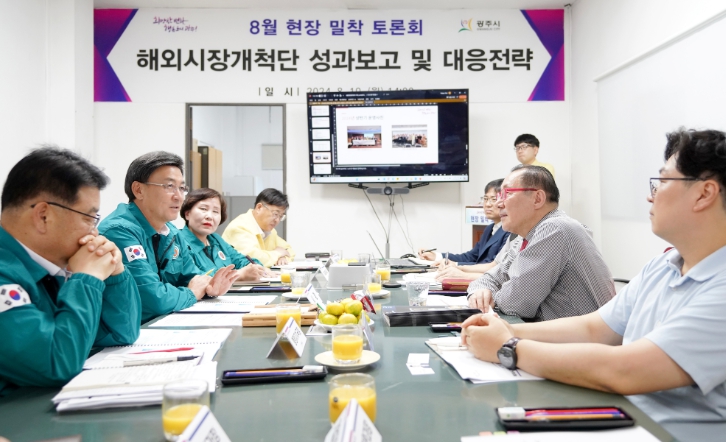 [뉴스서치] 광주시는 19일 관내 중소기업 해외시장개척단 지원 정책 및 대응 전략을 논의하는 ‘현장 밀착 토론회’를 초월읍에 소재한 ㈜거산에서 개최했다.