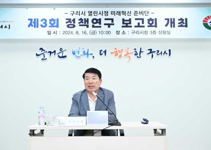 [뉴스서치] 구리시는 8월 16일 구리시청 3층 상황실에서 ‘구리시 열린시정 미래혁신 준비단’ 주최로 제3회 정책연구 보고회를 개최했다.