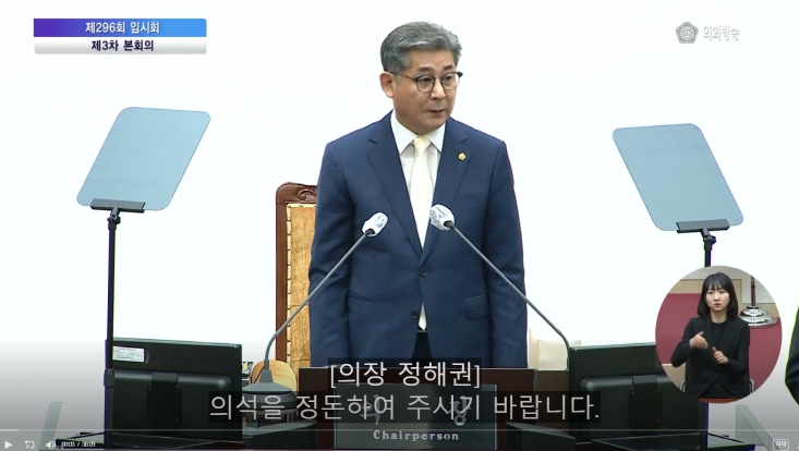 정해권 의장은 “현재 제공 중인 영상 자막은 2014년도 제7대 의회 ‘제216회 임시회’부터 2024년도 제9대 의회 후반기 ‘제296회 임시회’까지 총 2천877건의 서비스를 제공하고 있다”며 “앞으로도 신속·정확한 회의록 작성과 안정적인 자막서비스 제공을 위해 최선을 다하겠다”고 말했다.