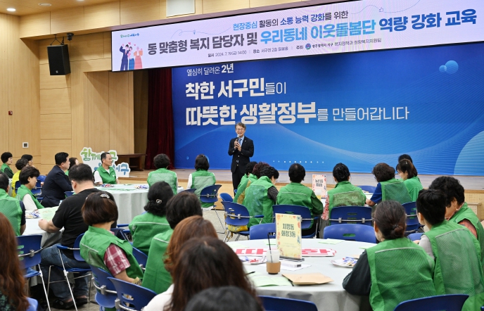 [뉴스서치] 광주광역시 서구는 19일 서구청 들불홀에서 우리동네 이웃돌봄단 82명과 동 맞춤형복지 담당 공무원 20여 명을 대상으로 소통능력 강화를 위한 역량강화 교육을 진행했다.