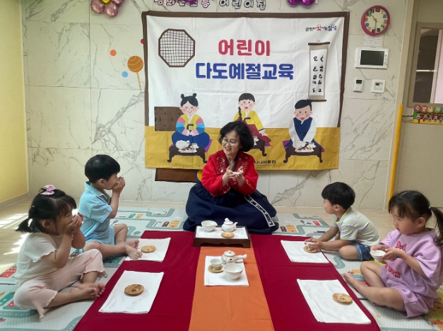 6월 시연교육을 거쳐 이달부터 112곳의 관내 어린이집을 순회하며 진행되고 있는 다도예절 교육은 우리 고유의 전통문화를 전수하고, 어린이들의 기본예절 형성에 도움을 주기 위해 지역사회 어린이집 원아들을 대상으로 진행된다.