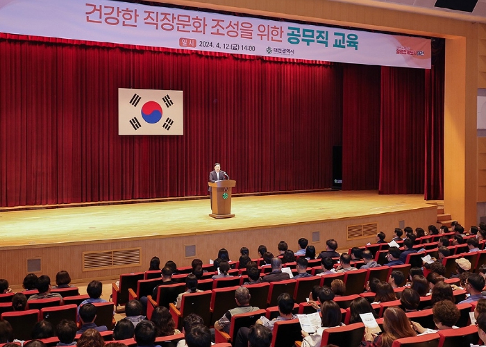 [뉴스서치] 대전시는 12일 오후 2시 시청 대강당에서 공무직 등 근로자 500여 명을 대상으로 시정 핵심 가치 소통 및 직장 내 성희롱·괴롭힘 예방 교육을 실시했다.